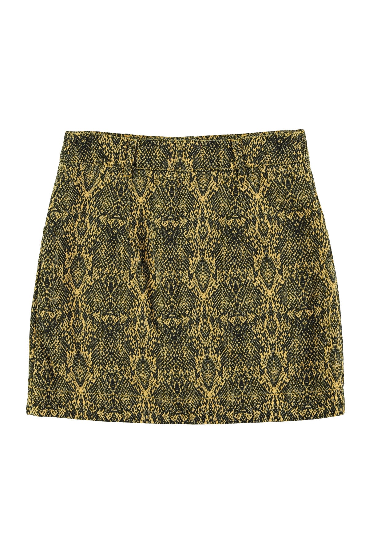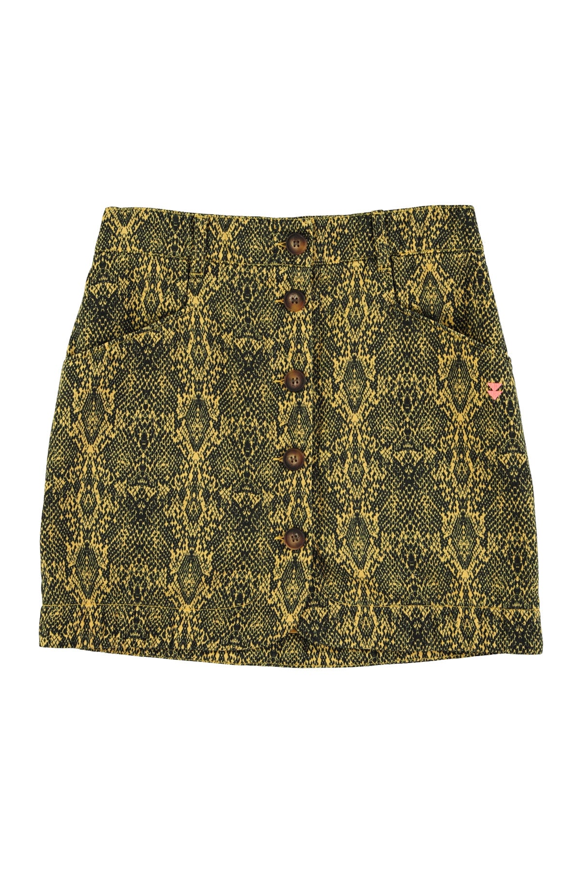 Short skirt with buttons on the front and side pockets. Belt loops. Color/Fabric:
